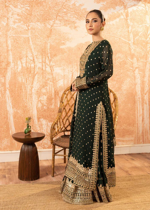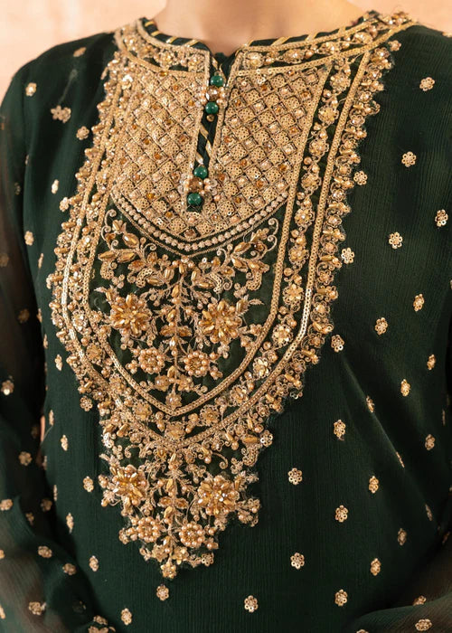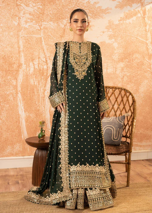 Additional Description: 1-Elevate your style with our exquisite Chiffon Sequin Embroidered Shirt, featuring handcrafted work on the neckline and adorned with beautiful tassels. 2-Complete the look with our matching Chiffon Sequin Embroidered Dupatta 3-Beautiful Ghararah, finished with delicate lace detailing
