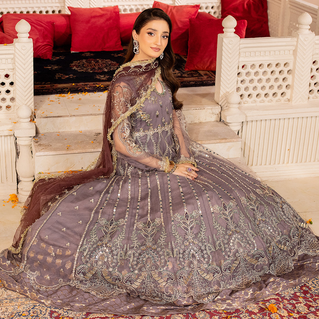 Maxi: Made with Organza Crundi Zree, decorated with embroidery, sequins, pearls, crystals, and Dabka work, with a comfortable Rasham Cotton lining.
